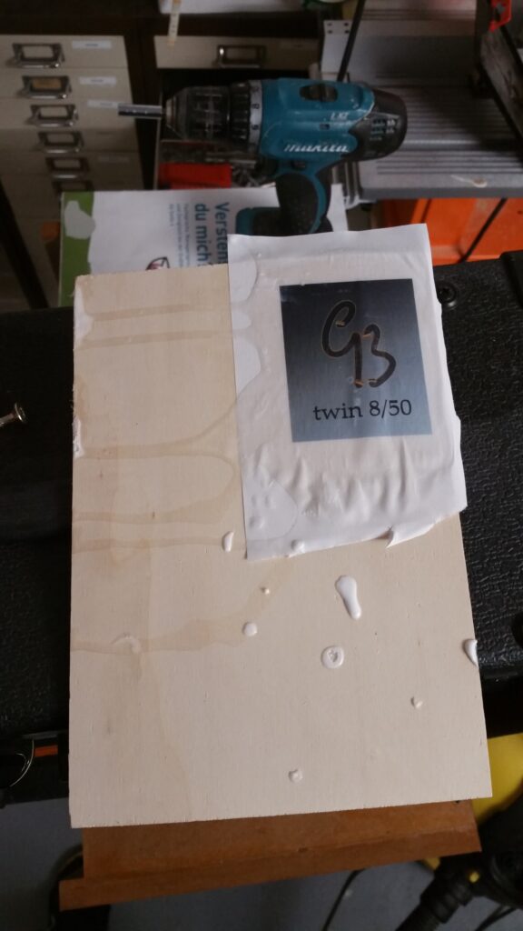 Ganz wichtig: das Logo wird mit Lack überzogen
