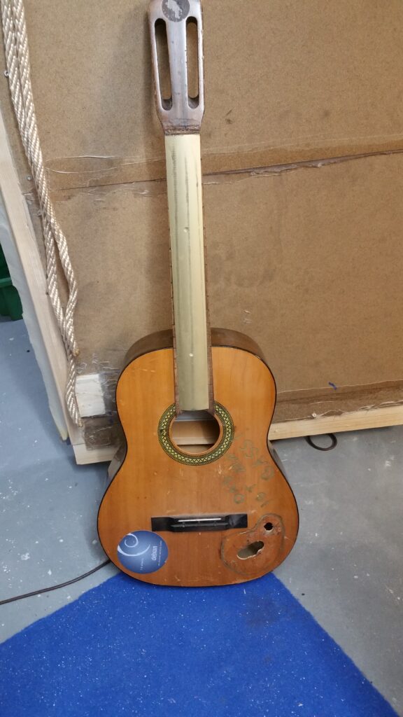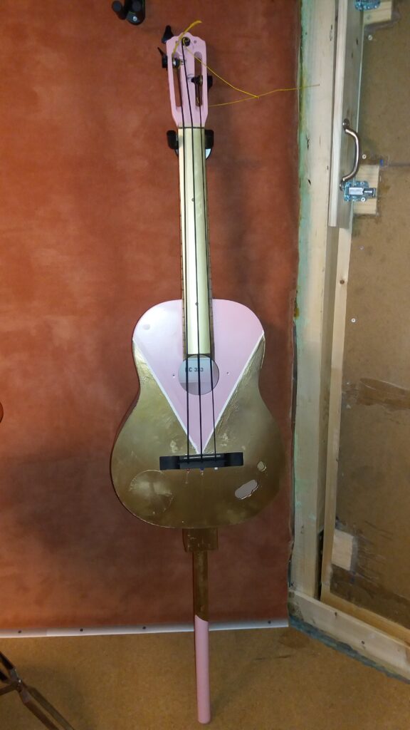 Dezember 12, 2019November 1, 2020 V200 Acoustic „Bass“ – Guitar Redemption Nimm eine Gitarre, klebe eine Teppichleiste aufs Fretboard…Nimm neue Hardware…Paintjob, drei Bass-Saiten, einen Fuss. Fertig ist der Upright 😉